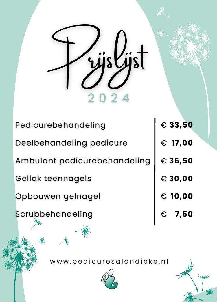 Hieronder vindt u de prijzen voor de verschillende behandelingen.